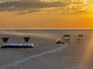 The Makgadikgadi Salt Pans are all that remains of a great lake which once covered most of northern Botswana, fed by rivers carrying salts. The most iconic pans, Ntwetwe and Sua Pan provide vistas of blinding white salt flats reaching far into the horizon where pans sleep-outs are experienced. No vegetation grows on the salty surface of the pans, but the fringes are covered with grasslands. No animals live on the pans, save a few populations of desert species and the elusive brown hyena living near the fringes. The result is that the salt pans provide an unforgettable landscape experience of incredible sunsets and sunrises and a bewildering lack of perspective rather than a game experience. Africa’s famous explorer Dr. David Livingstone crossed these pans in the 19th century, using two massive baobabs, believed to be 3,000 to 4,000 years old as a navigation tool.