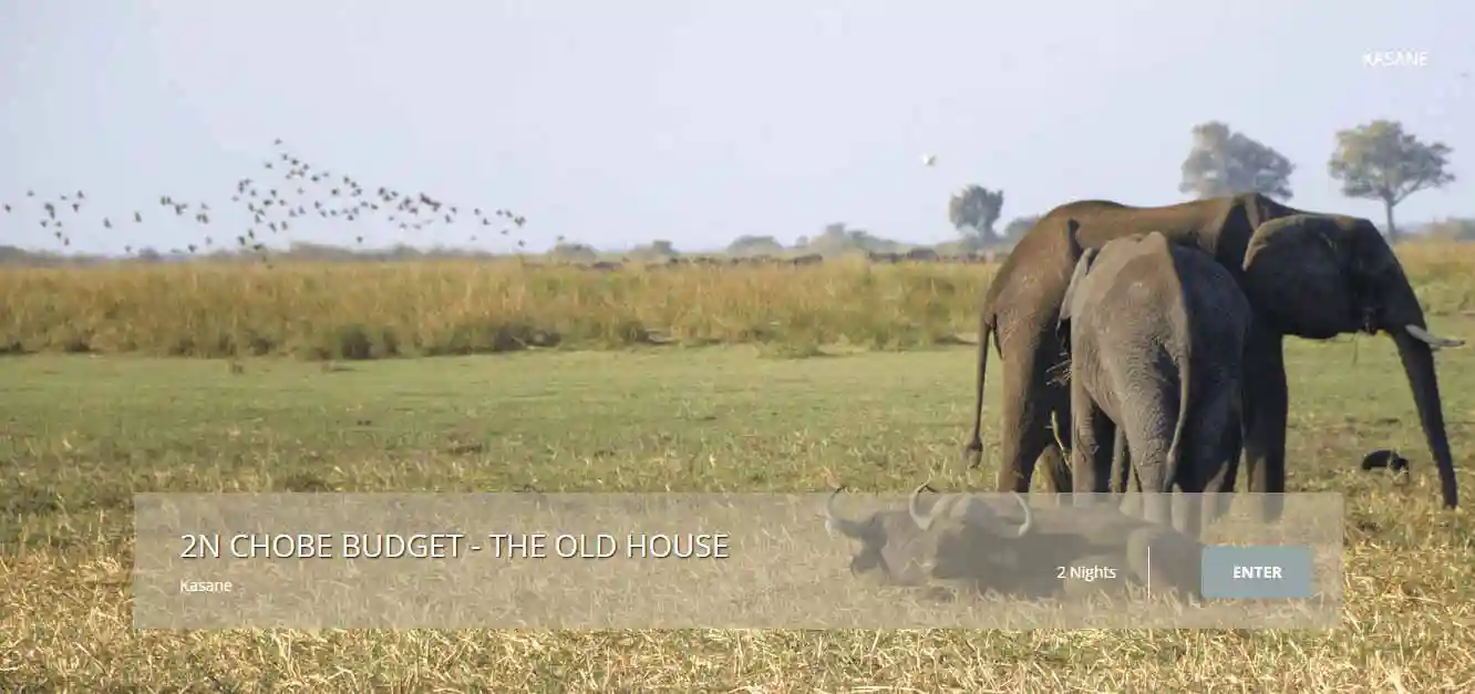 Included2 Night Chobe (Budget) – The Old HousePark feesActivitiesMealsReturn Transfer