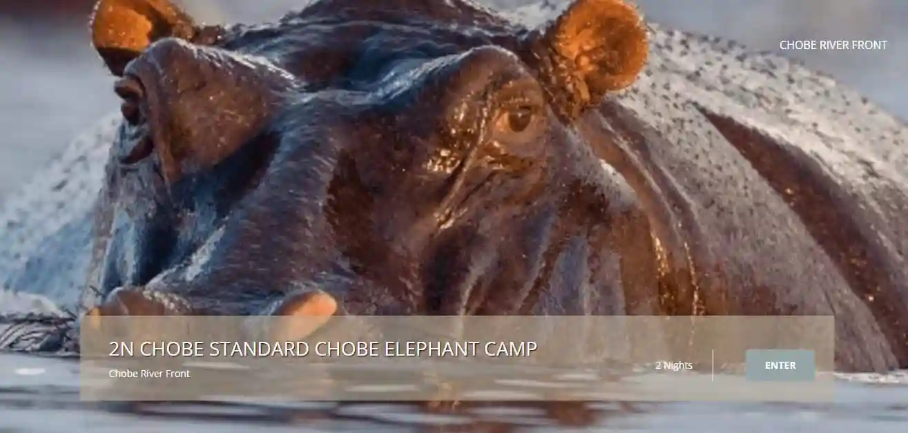Included2 Night Chobe (Standard) – Chobe Elephant CampBoat CruiseLaundryPark feesActivitiesLocal drinksMealsReturn Transfer