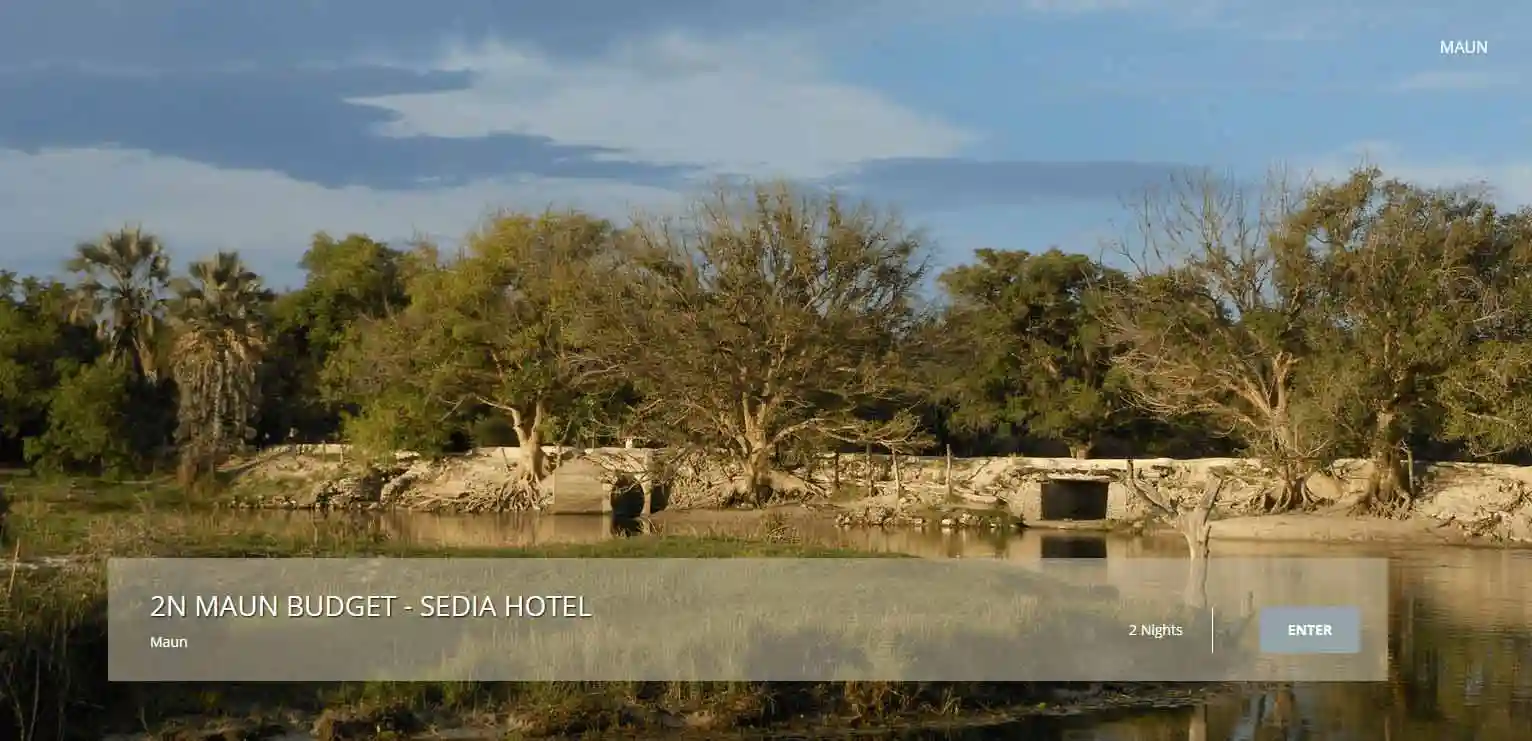 Included2 Night Maun (Budget) – Sedia HotelReturn TransferWaterBreakfast